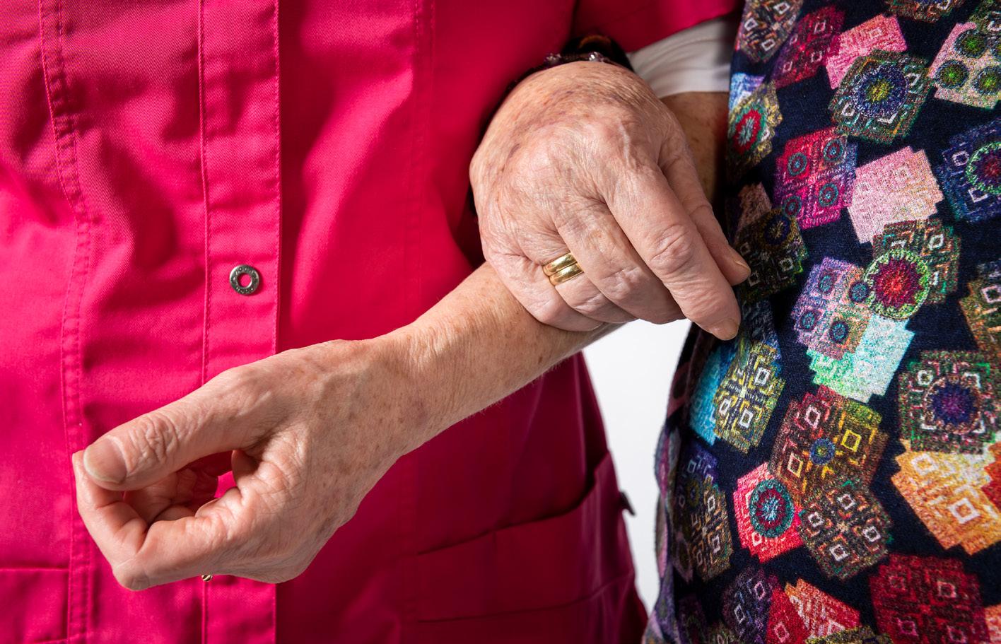Monique: “Bij alles wat je, individueel of met een groepje, doet stel je graag de eigen regie en zelfstandigheid van de bewoner voorop. Een voorbeeld is bewoners met psychogeriatrische uitdagingen met hun handen laten eten. Verwanten vinden dat vaak moeilijk (“Dat deed hij/zij thuis nooit!”) maar je wilt bewoners ook liever niet ‘voeren’. Het zélf kunnen draagt juist bij aan dat stukje eigenwaarde dat je niet wilt krenken. Een bewoner kan mij ook tien keer achter elkaar vragen waar ik ben. Ik geef iedere keer antwoord omdat ik weet dat hij zich gehoord wil voelen.”