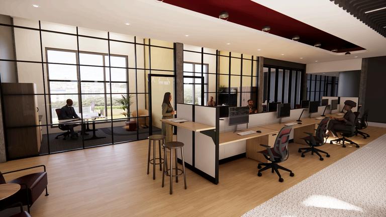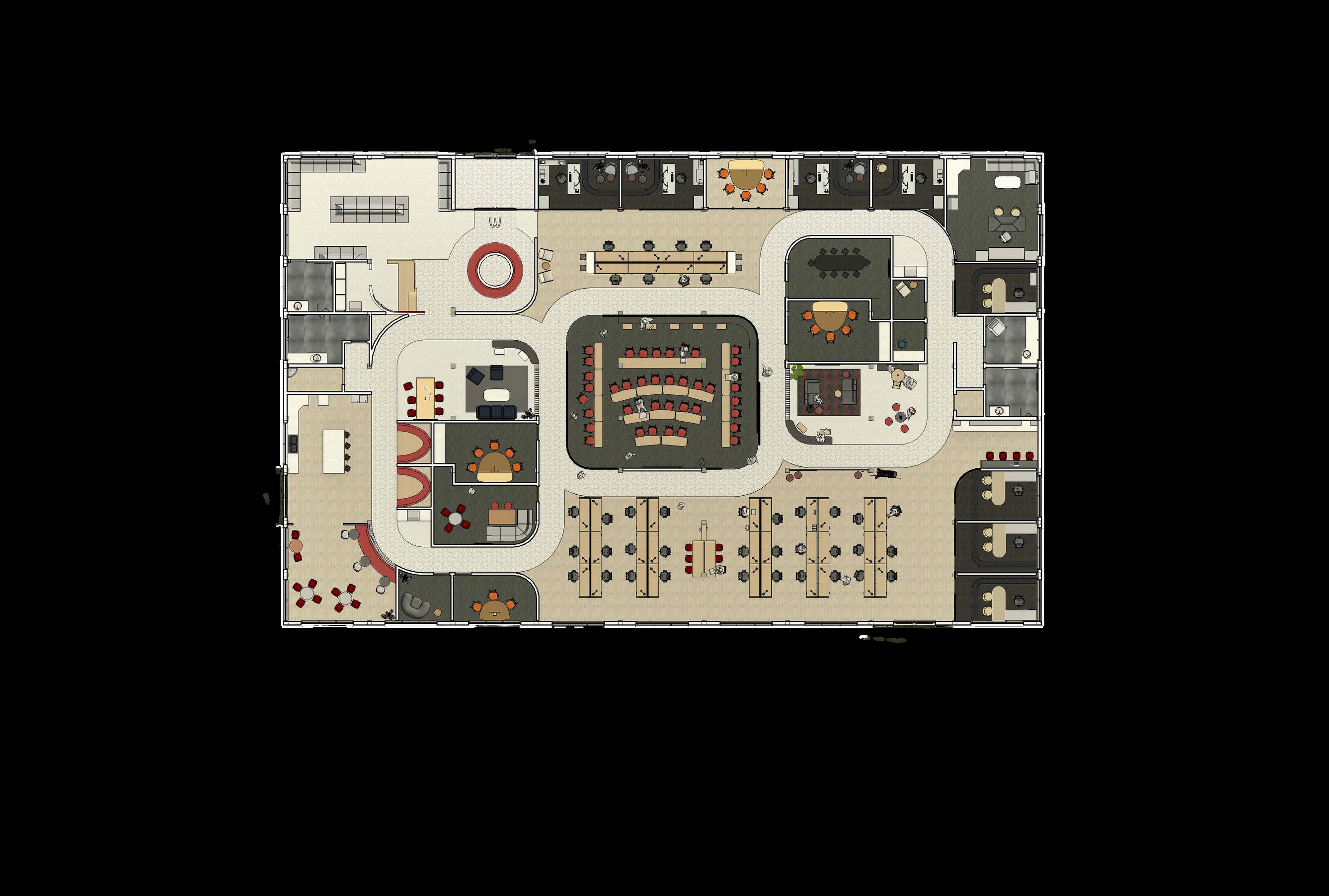 The design for a very well-known restaurant chain’s regional office showcases the company’s iconic brand, rich history, and vibrant culture throughout the space, while thoughtfully designed, diverse environments foster maximum productivity for all users. The Golden Continuum concept expresses their journey as an evolving brand thatremainsrootedinitsfoundingprinciples. The“Golden”servesas a dualmetaphor as a nod to the iconic “Golden Arches” literally and their cultural significance. The embraces the rich legacy and bright futureofthecompany.