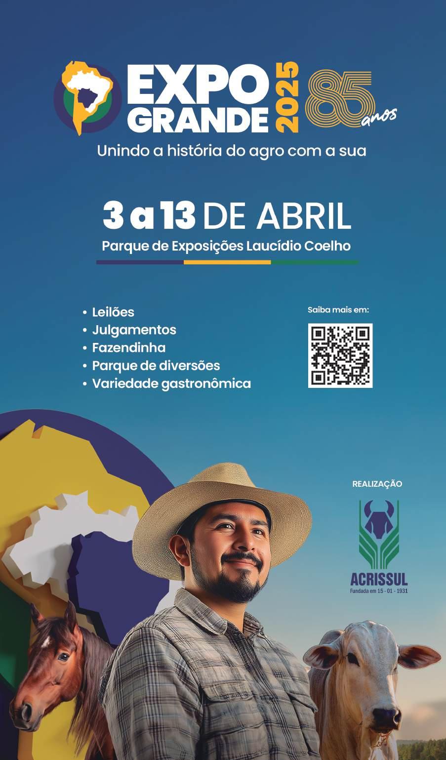 Além dos shows, a Expogrande também contou com uma ampla programação de leilões, exposições de animais, rodeios e ações voltadas para o agronegócio, reforçando seu papel como um dos eventos mais importantes do setor em Mato Grosso do Sul.