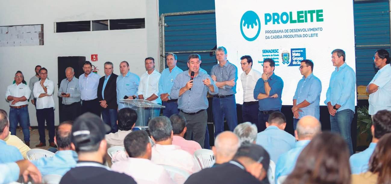 Proleite MS leva R$ 70 milhões à cadeia leiteira - Principal programa anunciado, o Proleite MS vai destinar R$ 70 milhões até 2026 para pequenos e médios produtores de 22 municípios-polo. O projeto prevê melhoramento genético, apoio à indústria, assistência técnica e o subprograma Leite Vida, que visa aumentar a produção e a qualidade do leite regional. Parcerias com o Senar-MS