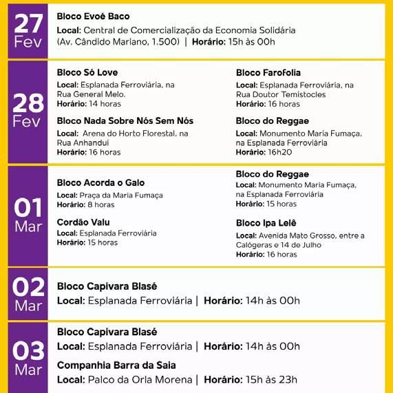 Os amantes do forró e do Carnaval podem curtir o Bloco Forrozeiros MS, comandado pela banda Flor de Pequi, que promete um verdadeiro esquen-
