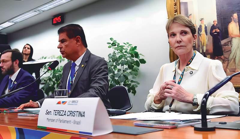Presenças sul-mato-grossenses marcaram o 11º Fórum Parlamentar do Brics, que ocorreu entre os dias 3 e 5 de junho, no Congresso Nacional, em Brasília. Os senadores Tereza Cristina (PP) e Nelsinho Trad (PSD), ambos de Mato Grosso do Sul, representaram o Brasil no evento e se posicionaram contra o avanço de medidas protecionistas no comércio global.