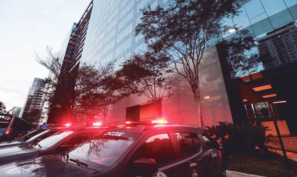 Agentes da Polícia Federal cumprindo mandados na Avenida Faria Lima, coração financeiro de São Paulo, durante a deflagração da Operação Carbono Oculto.