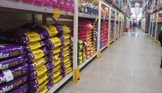 Corredores com ampla variedade de produtos para os pets dos consumidores