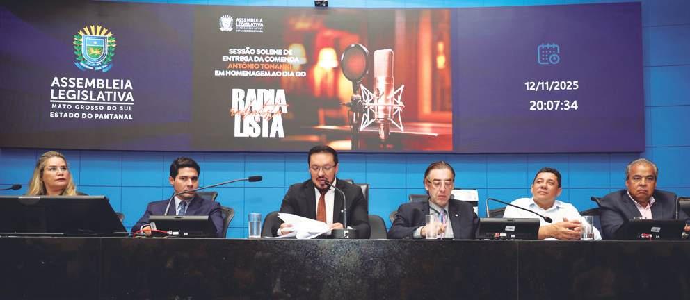 ozes que informam, emocionam e acompanham milhões de sul-mato-grossenses todos os dias foram reconhecidas na noite da última quarta-feira (12), em sessão solene na Assembleia Legislativa de Mato Grosso do Sul (ALEMS), em celebração ao Dia do Radialista. Entre os homenageados com a Comenda Antonio Tonanni, destaque para o Grupo Feitosa de Comunicação, que há décadas contribui para o fortalecimento da imprensa regional. A homenagem foi proposta pelo deputado e também radialista Lucas de Lima, que há 39 anos atua no setor. Ao abrir a solenidade, o parlamentar lembrou a importância da radiodifusão na construção da democracia e da cultura brasileira. “Ser radialista é mais do que estar ao microfone. É dar voz à sociedade”, destacou.