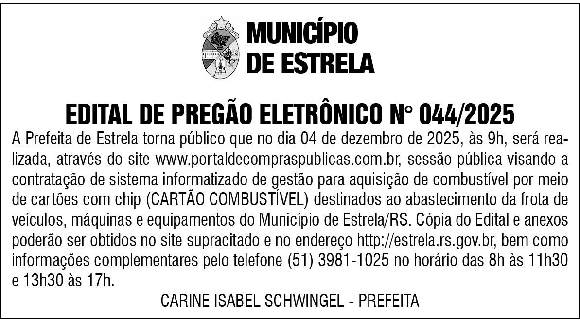 - Ainda sobre a prefeita de Estrela, Carine Schwingel (União Brasil) será uma das palestrantes do Granpal Summit, evento que ocorre no dia 12 de dezembro, no Instituto Caldeira, em Porto Alegre. Não por menos ela também passou a ser cogitada como possível pré-candidata a deputada. Mas ela já deixou claro que vai cumprir os quatro anos à frente da prefeitura.
