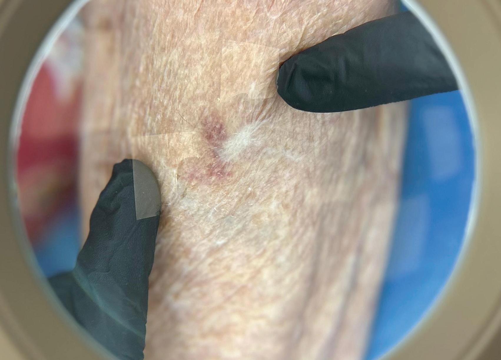 O processo costuma começar pela dermatoscopia e pela biópsia — geralmente feita no próprio consultório. O fragmento enviado ao laboratório revela qual é o subtipo e orienta a estratégia terapêutica.