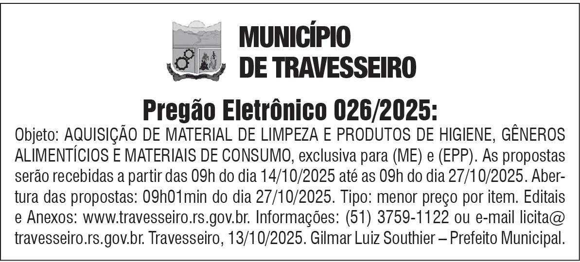 - Também em Lajeado, o governo municipal estima receber e analisar até amanhã a proposta e as respostas da terceira empresa classificada no edital de licitação para o recolhimento de lixo.
