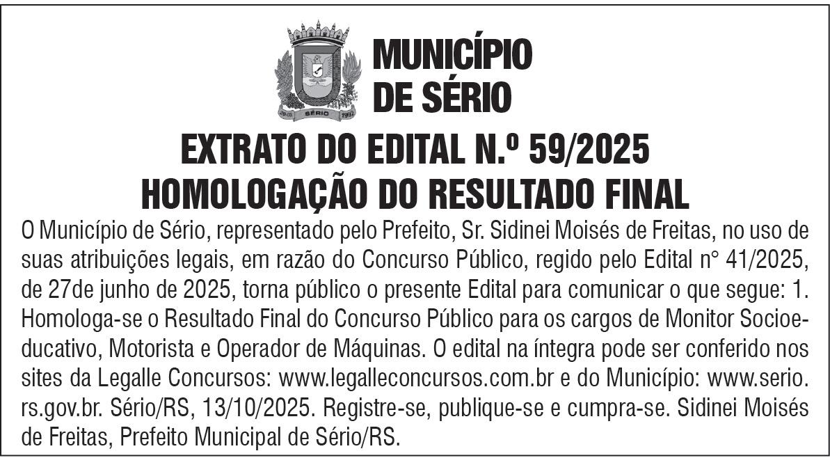 JAIR EDSON GREGORIUS, 63, faleceu no sábado, 11. O sepultamento ocorreu no Cemitério Católico da Cruz das Almas, em Bom Retiro do Sul.