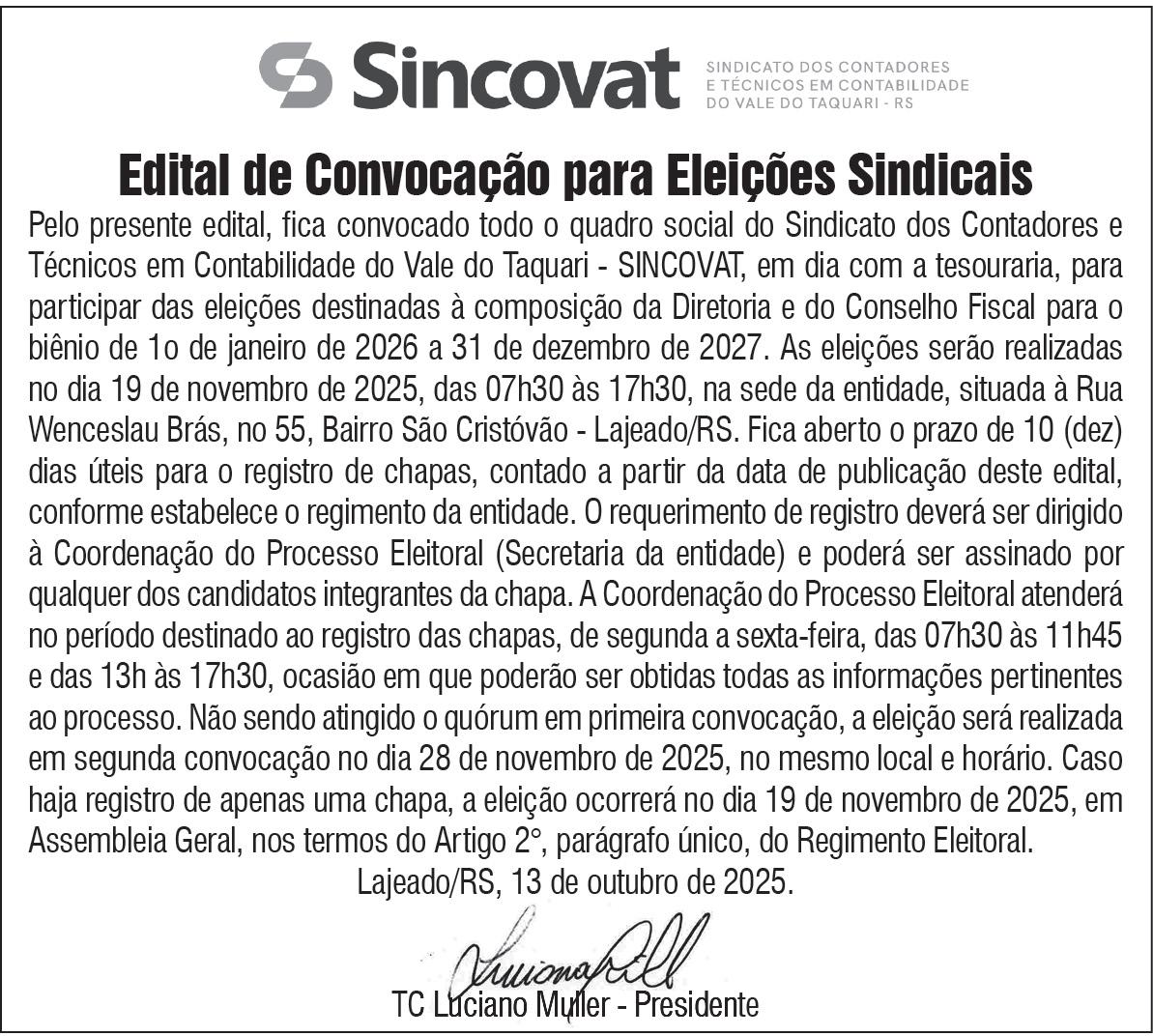 - Já em Estrela surgiu mais um pré-candidato a deputado estadual. É o assessor de imprensa da Câmara de Vereadores, o jornalista Fabiano Diehl, filiado ao União Brasil.