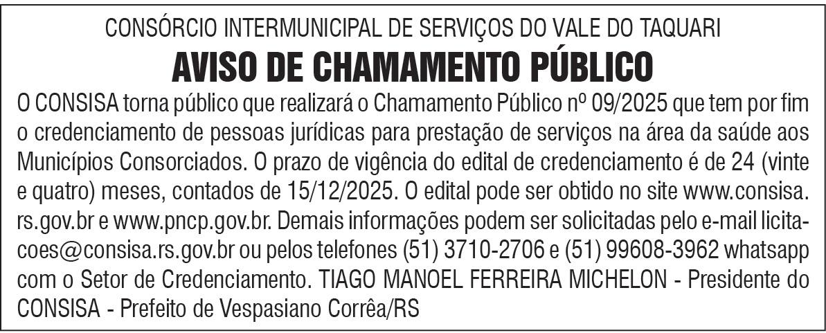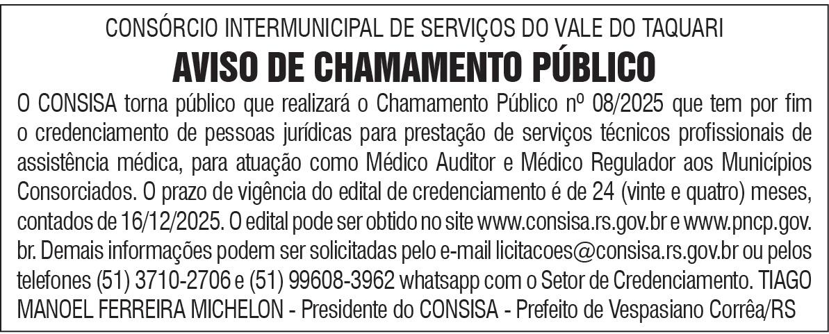 O prefeito de Encantado, Jonas Calvi (PSD), convida a comunidade e a imprensa para a prestação de contas do exercício de 2025. O encontro será hoje, a partir das 18h30min, no espaço do Encanta Hub. Já em Estrela, a prefeita Carine Schwingel (União Brasil) agendou a prestação pública de contas para amanhã, às 7h30min, no auditório da prefeitura. E se outros gestores também programaram encontro semelhante, é só mandar o convite que também vamos prestigiar!