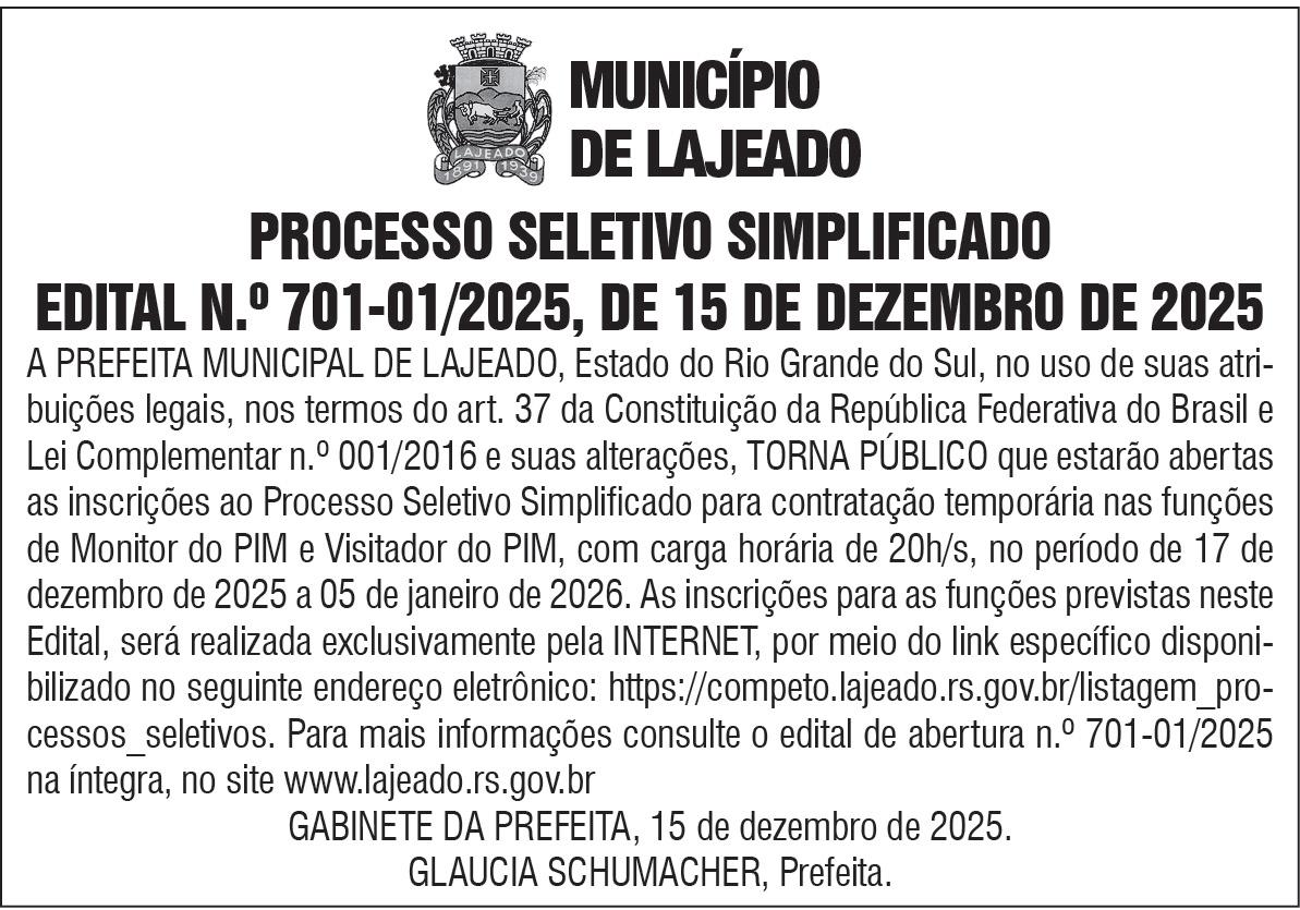 - O julgamento do caso da candidatura irregular do Podemos de Lajeado nas eleições de 2024 foi remarcado para esta terça-feira, 16, no Tribunal de Justiça. Uma derrota do partido acarreta na perda da cadeira de Antônio de Oliveira na câmara.