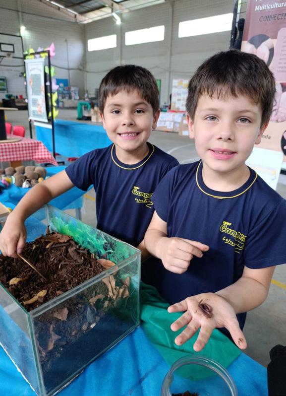que a programação reúne uma variedade de oficinas e atividades pensadas para inspirar os estudan tes. “Com grande expectativa e en tusiasmo, fizemos a abertura oficial da sétima Semana Cultural ‘Vozes, versos e vivências: a leitura que ins pira e dá voz a cada um’. Tudo que acontece aqui parte da leitura, que nos inspira e orienta os trabalhos expostos pelos alunos, construídos ao longo do ano”, revela. Nesta sétima edição, a Emef teve a final do primeiro concurso de leitura, oficinas de música, in teligência artificial, laboratório de ciências, esportes e até uma vivên cia de jiu-jitsu. No centro de tudo, está a Feira do Livro, evento ainda mais tradicional da instituição. “Também entregamos o Livro da Vida, produzido desde o início do ano, no qual cada aluno escreve sua própria história e valoriza as raízes da sua família. O encerramento ocorre hoje, e esperamos que a comunidade participe e aproveite”, reforça a diretora. O evento, já consolidado, envolve todas as turmas, do pré ao nono ano, e os estudantes maiores também preparam oficinas para os menores, assumindo seu protagonismo. A própria solenidade de abertura foi ministrada pelos estudantes Luiza Helena Bertol Miqueluzzi e Augusto Kunz Ra daelli, ambos do 8º ano A.