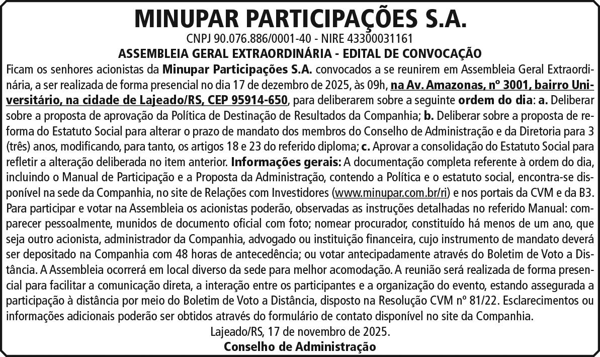 - Os contribuintes de Encantado estão convidados para a Audiência Pública da Lei de Diretrizes Orçamentárias (LDO). O encontro ocorre no dia 24 de novembro, às 16h, na câmara de vereadores. - Em Arroio do Meio, a Associação Comercial, Industrial e de Serviços (Acisam) está muito preocupada com redução da zona industrial no escopo do novo Plano Diretor feito pela Univates.