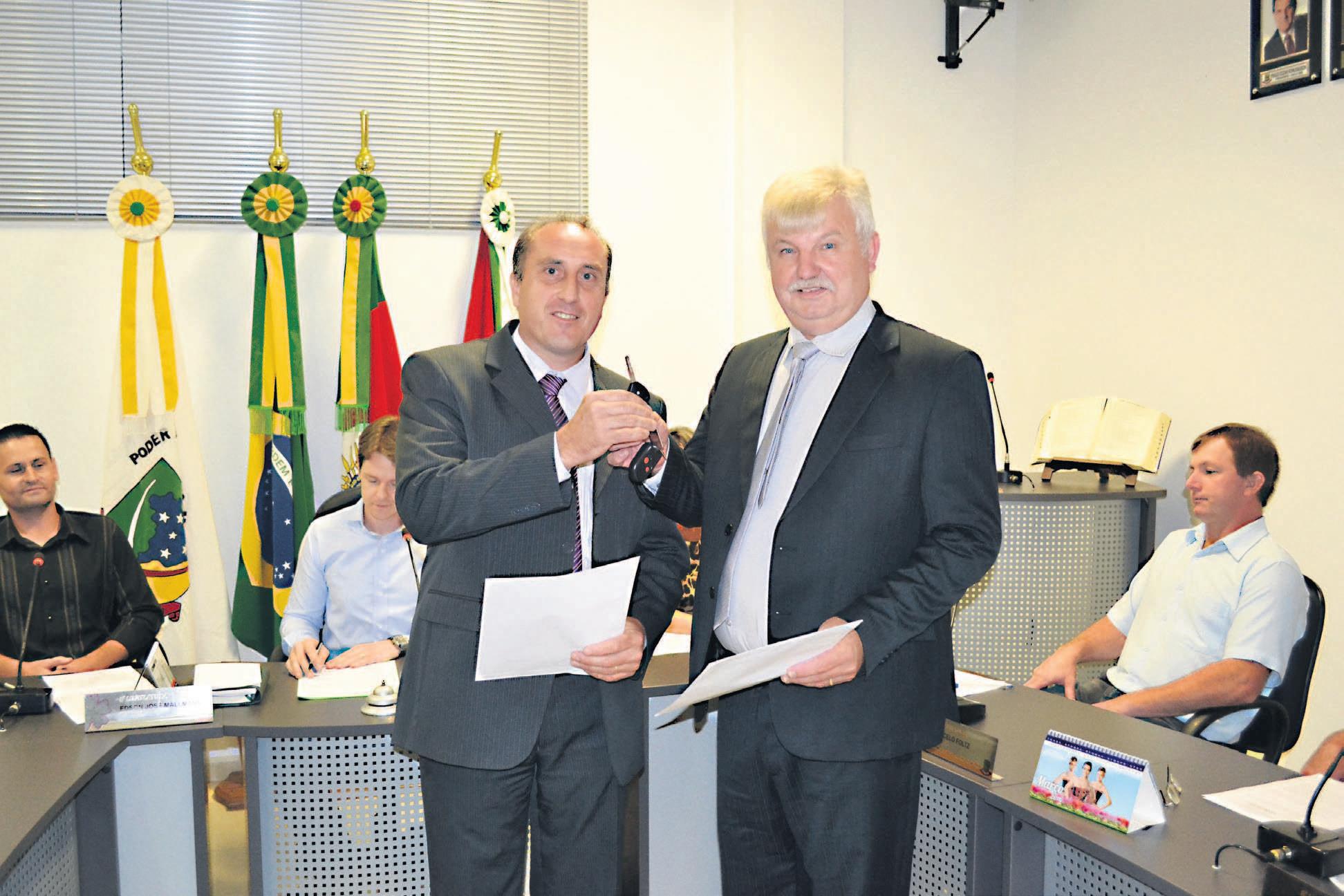 Em sessão solene no Legislativo, o prefeito Fabiano Immich entregou o posto de chefe do Executivo para o vice, Inácio Herrmann. Junto com ele, quatro secretários também deixaram o governo. Prefeito Immich