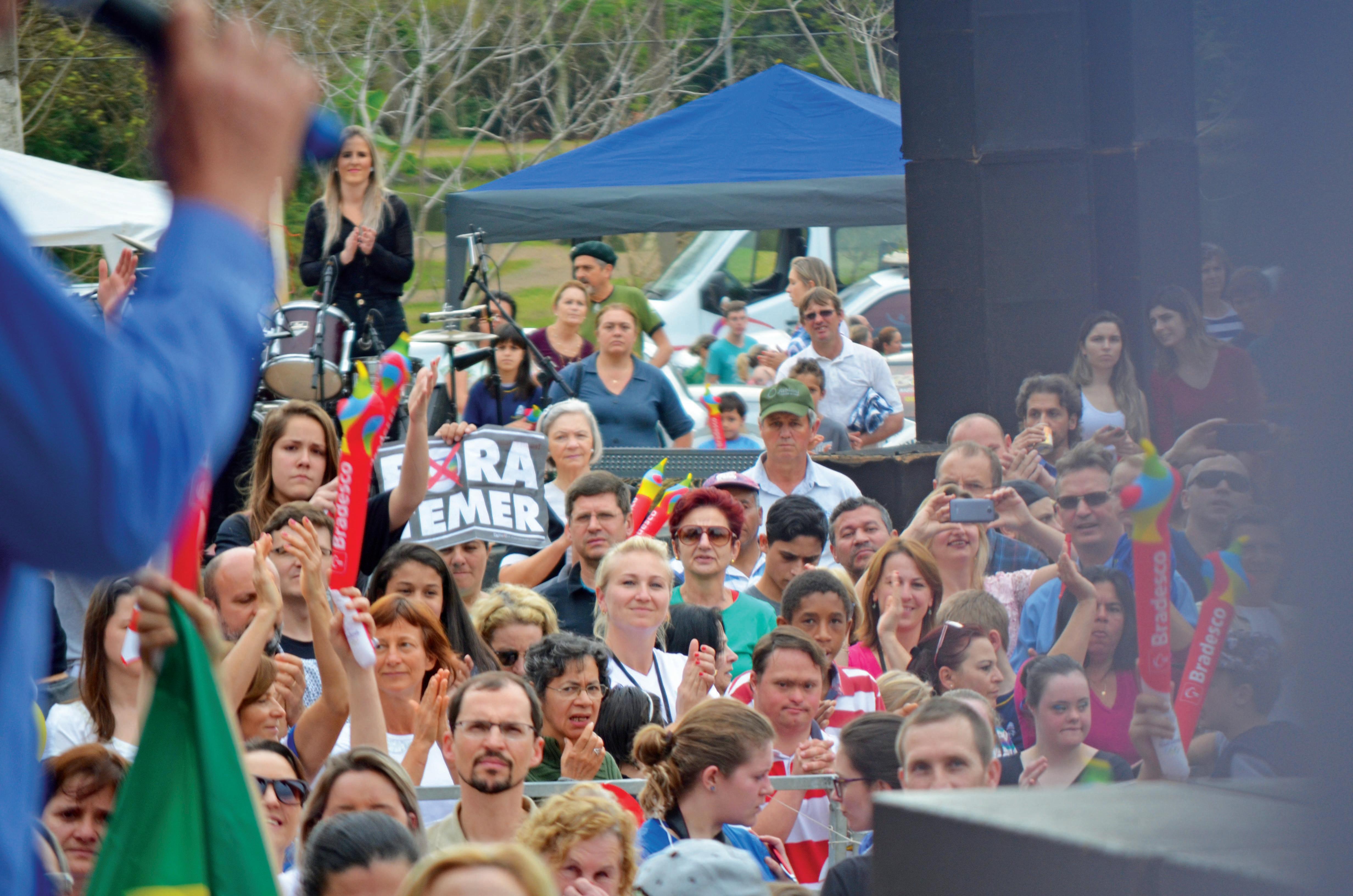 O momento histórico e inédito para o esporte regional teve expressões sociais e populares das mais diversas. Entre gritos, bandeiras e placas, houve até quem pediu a cabeça do presidente interino Michel Temer.