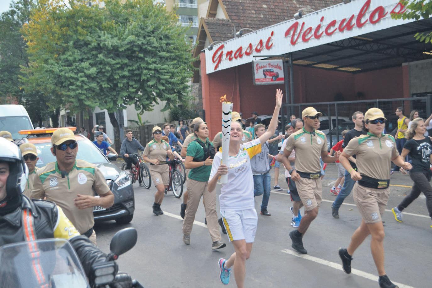 da Coca-Cola e Bradesco. Além de Nascimento, a tocha foi acessa pelas estudantes do Instituto Estadual Monsenhor Scalabrini, Emily Nicole Gebing Pinheiro, Júlia Martini Dalmoro e Larissa Klunck Veronese. Elas foram selecionadas por meio de concurso de redação promovido