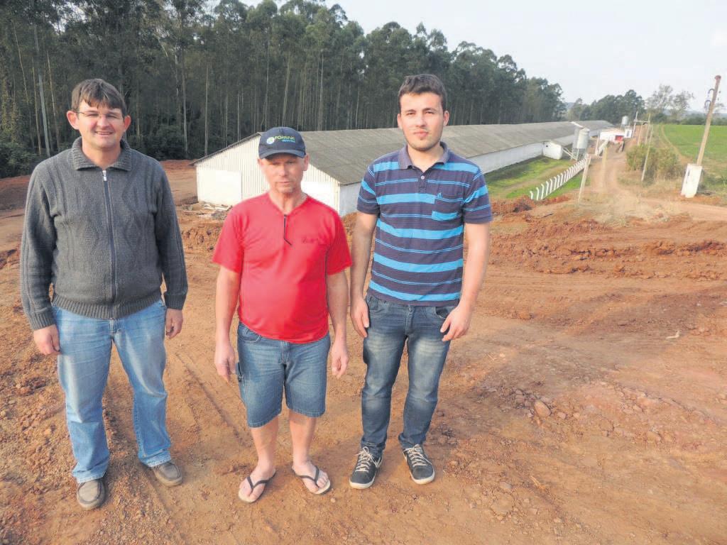 O produtor de ovos férteis, Augusto Kich, da Linha Bom Fim, trabalha na terraplanagem para iniciar a construção de mais dois aviários. Cada estru-