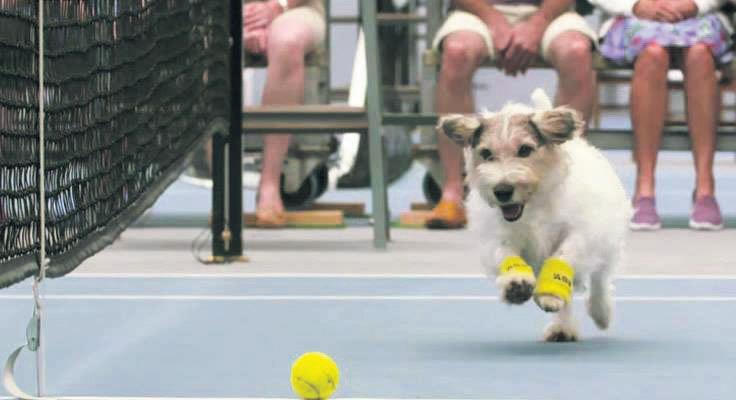Está no site Inquietaria. com. Em Auckland, na Nova Zelândia, três cães foram “convocados” para catar as bolas em uma partida de tênis. A ação foi organizada pelo banco neozelandês ASB.
