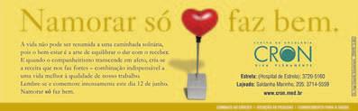 Neste domingo, 12, comemora-se o Dia dos Namorados. E neste dia penso que qualquer um que compartilha a sua vida com outra pessoa, seja a que título for, seja qual o grau de profundidade ou de comprometimento, deve resgatar aquelas razões que ocasionaram o cruzar de suas vidas. O abraço, o beijo, o afeto, o sexo, a parceria, os filhos e todos os demais pontos em comum. Resgatar, recordar e cultivar, para que não se perca o gosto de estar junto, para que o amor seja mais sólido do que líquido. Afinal, como disse Tom Jobim, fundamental mesmo é o amor. E é impossível ser feliz sozinho.