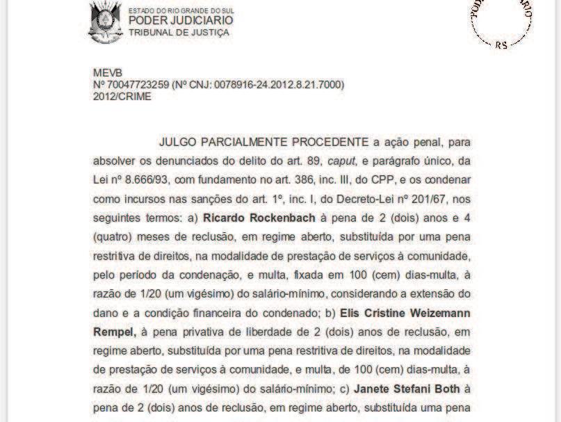 icardo Rockembach (PP) foi considerado culpado por desvio de recursos públicos. Mas não perderá o cargo. A denúncia do MP apontou ilegalidade na dispensa de
