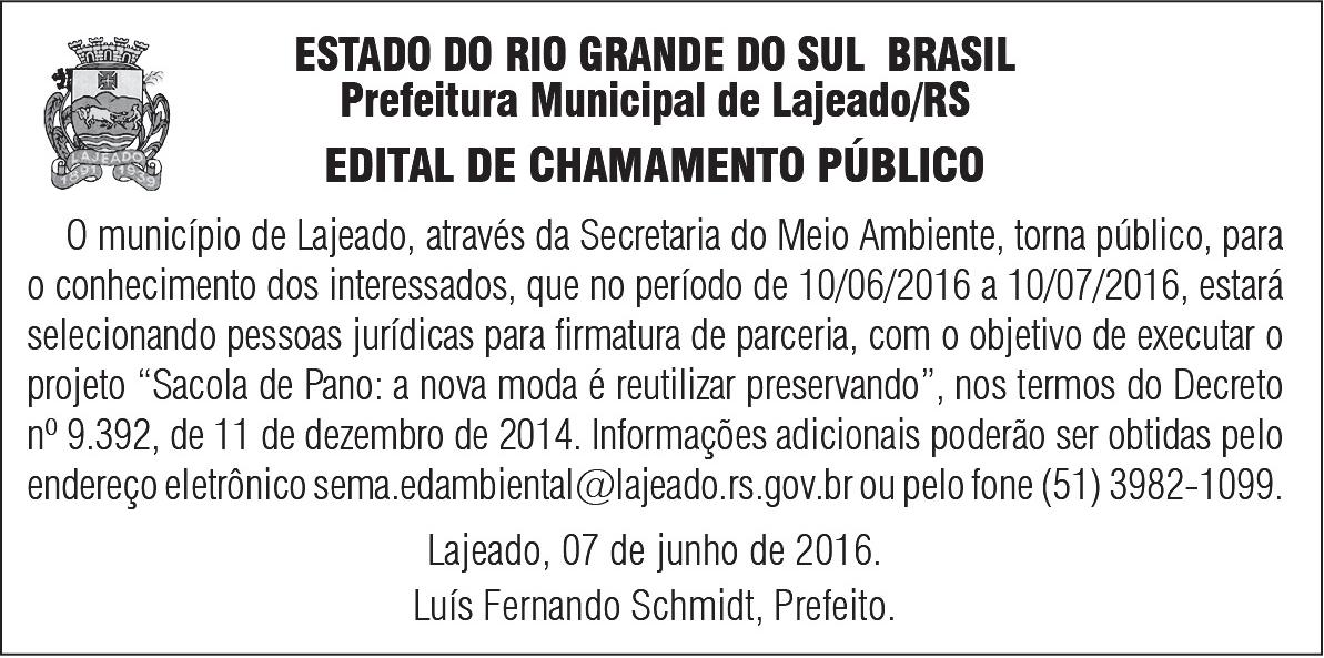 Fechamento da edição: 21h Lajeado, sexta-feira, 10 de junho de 2016