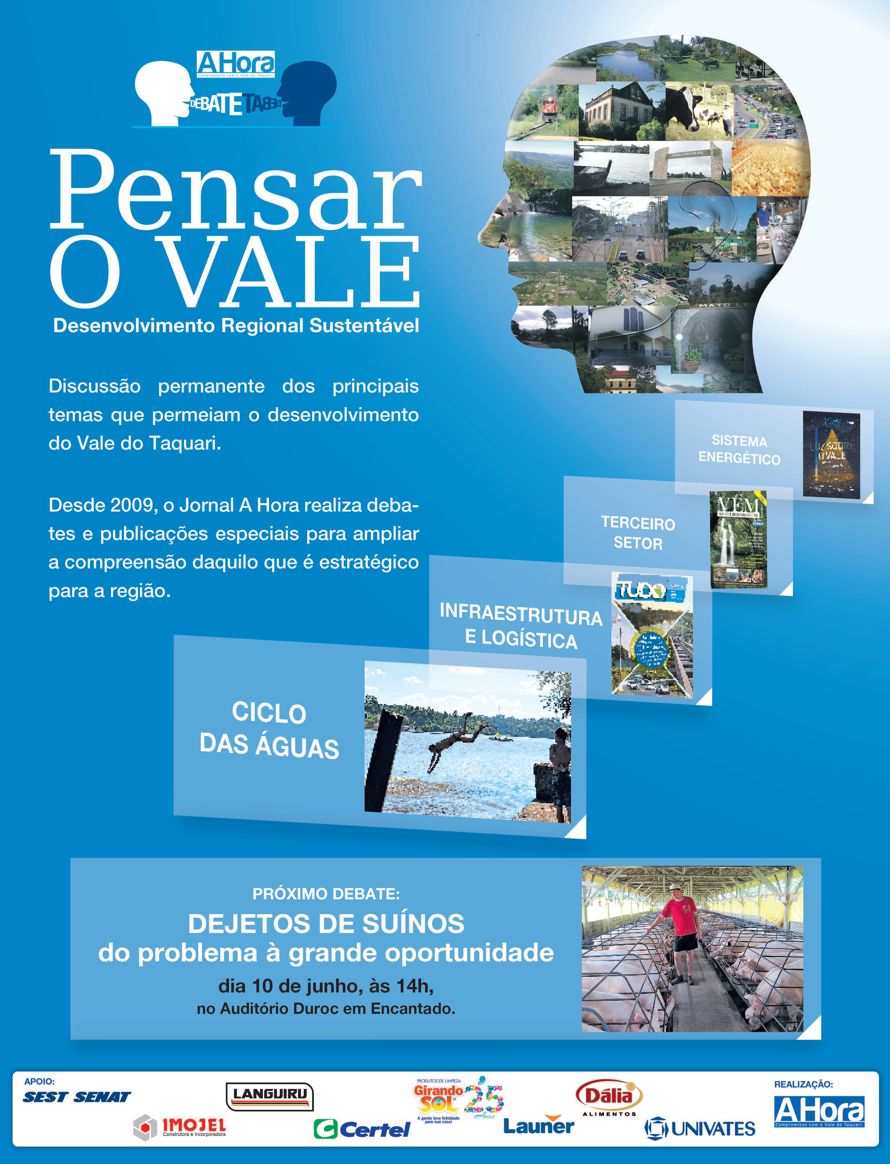 Suinofest, em Encantado, recebe a partir das 14h de hoje painel do projeto Pensar o Vale, que, em síntese, estabelece uma discussão permanente dos grandes temas que permeiam o desenvolvimento regional. Tem sido assim desde 2009, quando o jornal A Hora credenciou o fórum como ferramenta de debate sobre os assuntos que merecem interferência da sociedade. Dejetos de Suínos: do problema para a oportunidade. O Vale do Taquari não se caracteriza apenas pela criação de suínos, mas por possuir toda a cadeia produtiva da suinocultura, que se estende desde a produção até a completa estrutura para abate, transformação e comercialização desses produtos. Fatores como a grande concentração de rebanhos em pequenas propriedades, o crescimento desordenado e a localização geográfica de propriedades nos municípios geram problemas ambientais à suinocultura do Vale do Taquari. São mais de 300 mil animais em fase de terminação.