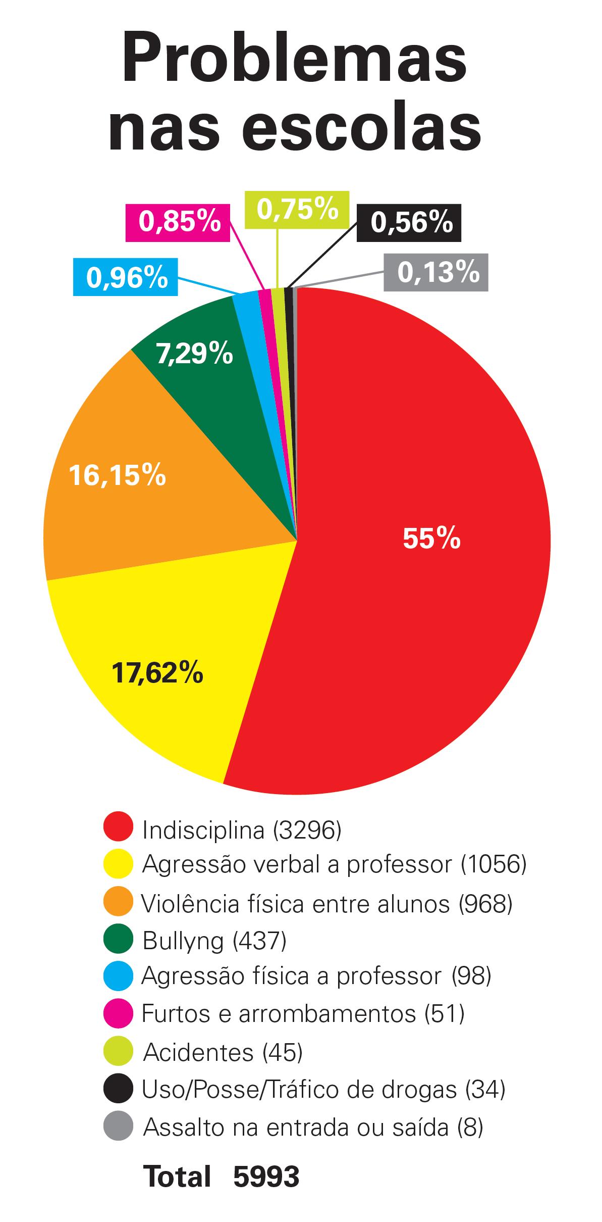 do com auxílio das Comissões Internas de Prevenção de Acidentes e Violência Escolar (Cipaves). Agressões físicas ou verbais aos professores representam 15,6% dos registros.