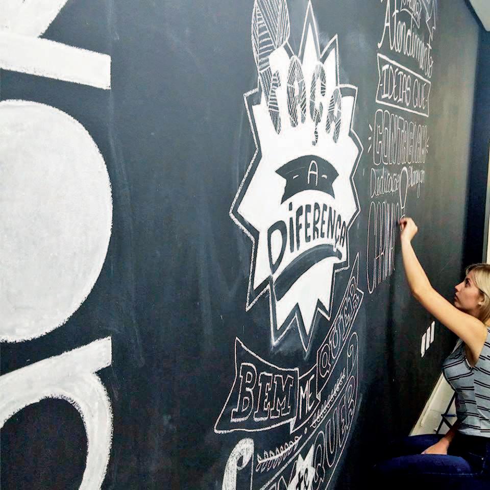Maiara Leonhardt utiliza um tipo de expressão gráfica, que parte do conhecimento popular. A técnica chamada lettering ganha espaço na publicidade e até na arquitetura urbana.