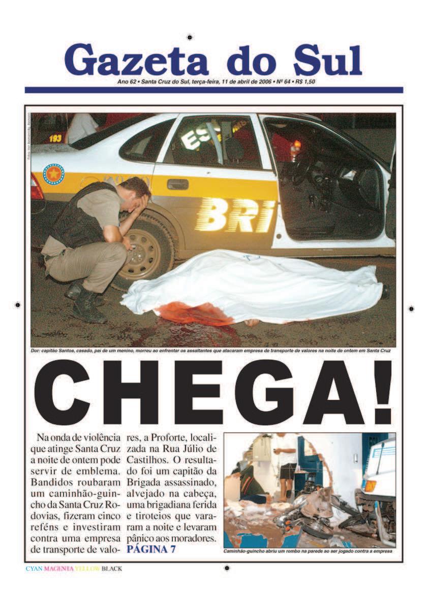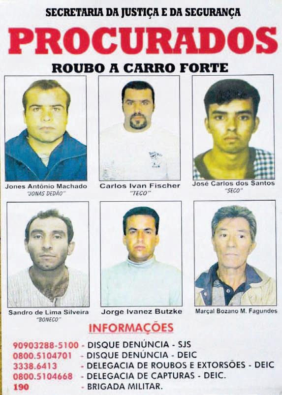 carros-fortes e também à praça de pedágio de Marques de Souza. Estima-se que tenha roubado R$ 15 milhões entre 2002 e 2006. Reportagem entrevista personagens que participaram da prisão do assaltante. Páginas 4 a 6