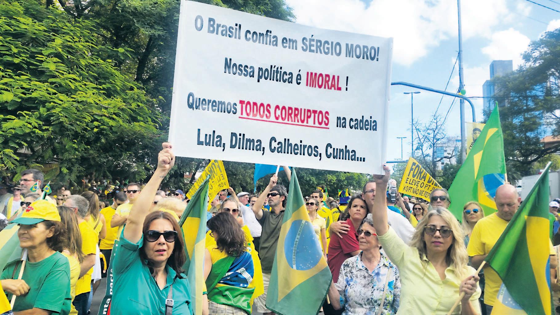 Mas os recados desse dia 13 de março não acabam no pedido de impeachment. A flecha da manifestação pacífica e ordeira também mira a corrupção, o governo atolado na incompetência administrativa, na crise econômica e na arrogância de seus integrantes. Em paralelo, eleva o juiz Sérgio Moro a super-homem.