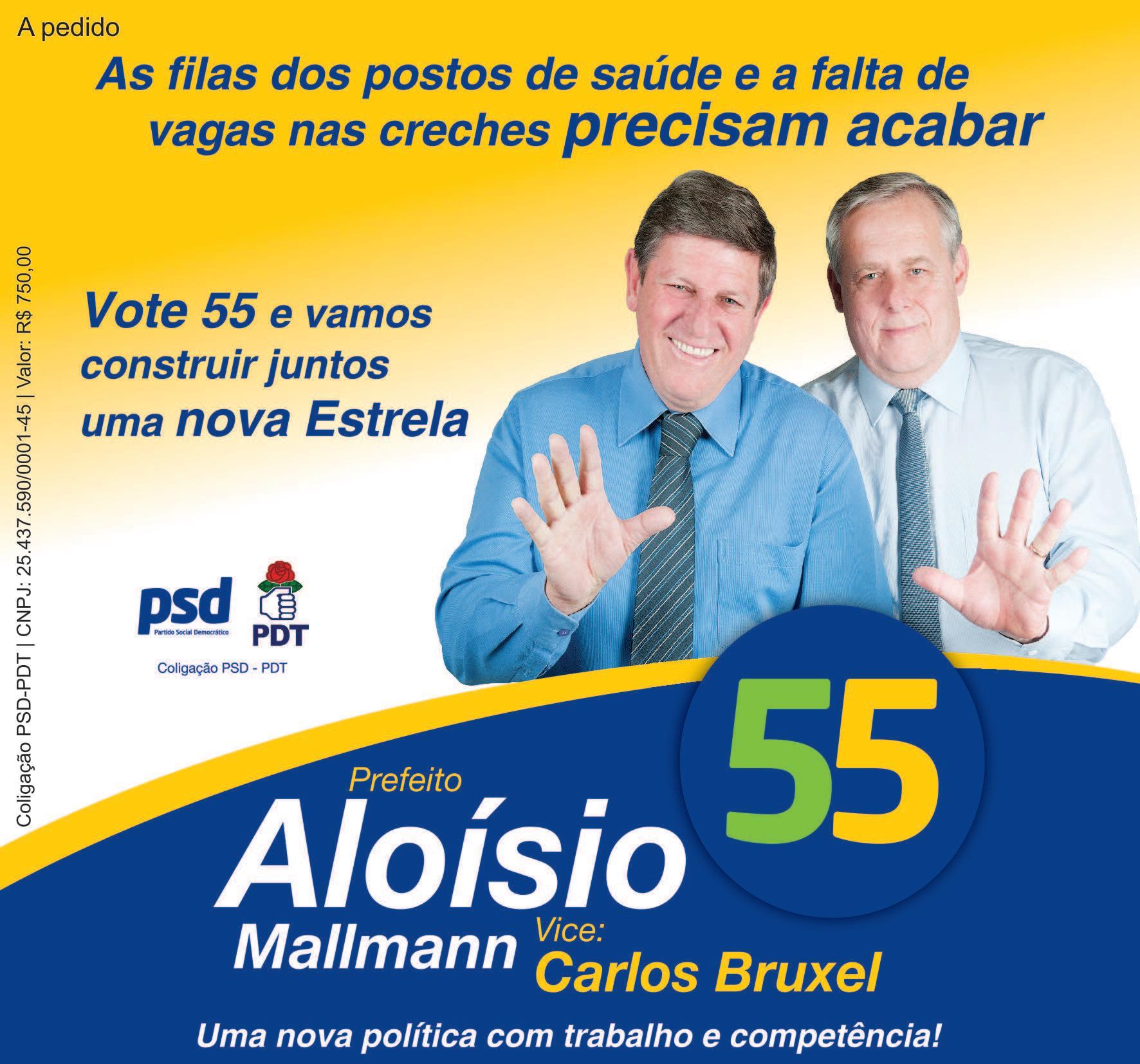 Três candidatos de mesmo sobrenome disputam a prefeitura de Estrela. Rafael Mallmann (PMDB) tenta a reeleição, enquanto Joel Mallmann (PR) e Aloísio Mallmann (PSD) lideram a oposição para governar a cidade. Veja o que pensa e promete cada um deles.