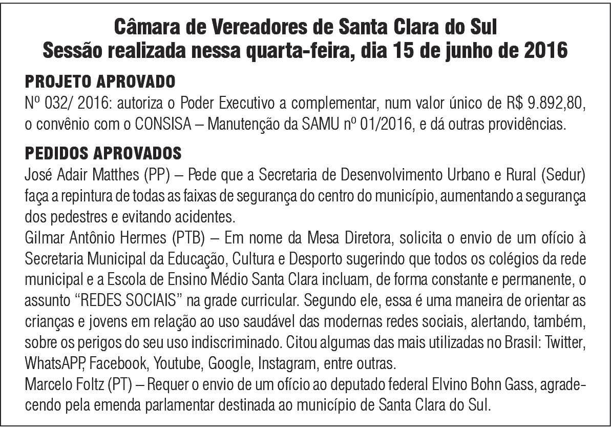Fechamento da edição: 21h Lajeado, sexta-feira, 17 de junho de 2016
