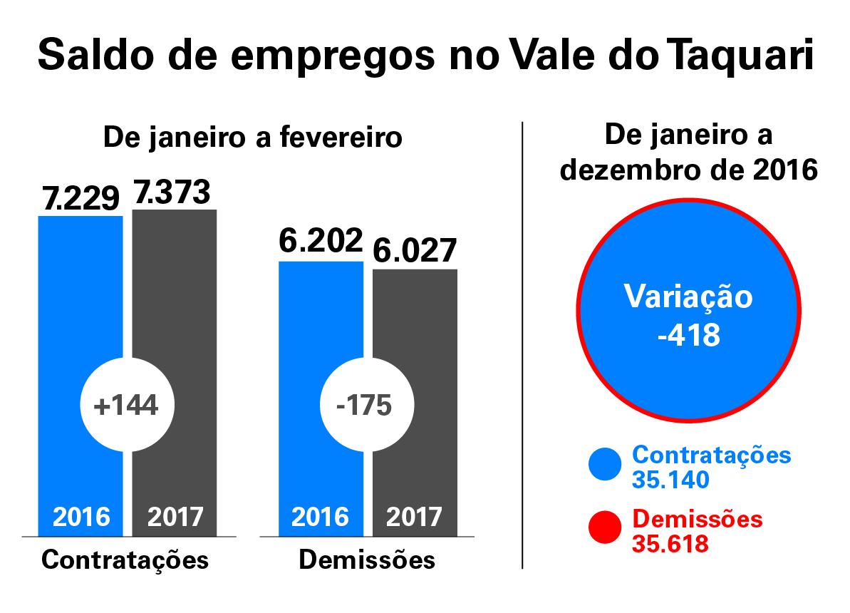 Pela primeira vez após 22 meses, o saldo de contratações foi positivo no país, com 35,6 mil pessoas empregadas. No Vale, nos dois primeiros meses do ano foram criados mais de mil postos de trabalho, resultado semelhante ao mesmo período de 2016.