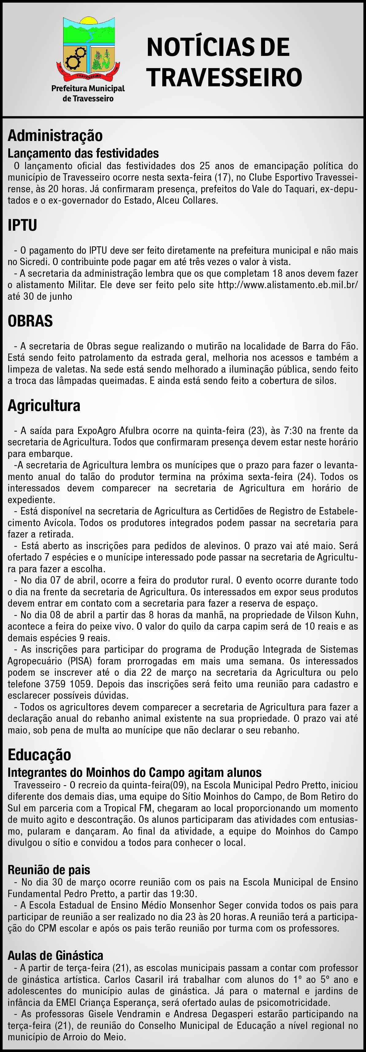 Lajeado, fim de semana, 18 e 19 de março de 2017