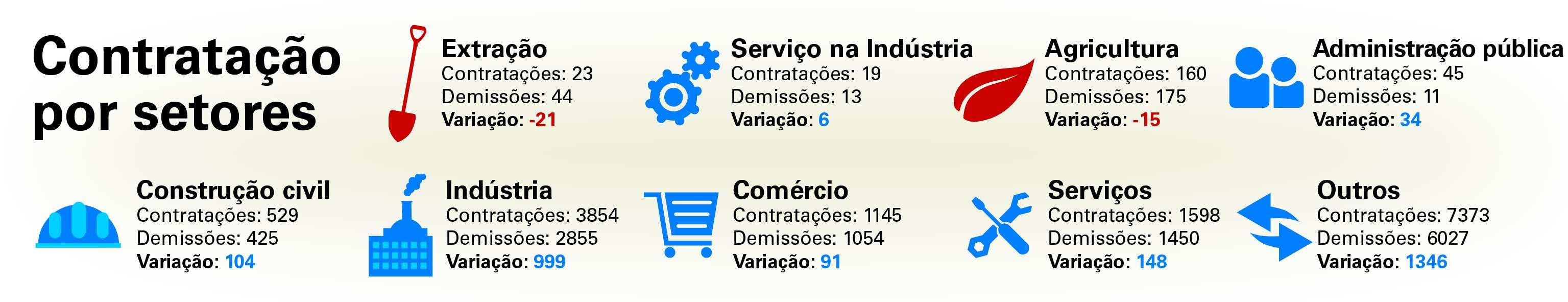 Na região, o setor com melhor desempenho foi a indústria, que contratou 3,8 mil pessoas nos dois primeiros meses de 2017. A variação positiva é de 999 contratações