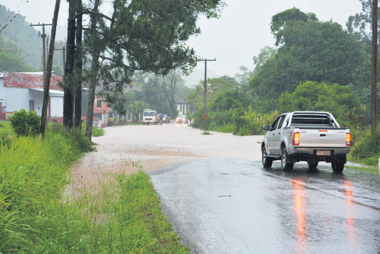 trabalho desde a madrugada de domingo. Mas, apesar dos alertas emitidos aos condutores em função dos diversos acúmulos de água em trechos de vias públicas, pelo menos um acidente de alto risco foi verificado neste domingo. Tal fato aconteceu na Linha Travessão, divisa com Paverama. Uma mulher de 46 anos tentou fazer uma conversão e, devido à grande quantidade de água na pista, teria perdido o controle do veículo antes de cair no Arroio Ferreira. Ela foi salva por um homem que passava pelo local e a socorreu com uma corda. A vítima passa bem e a estrada chegou a ficar bloqueada durante a segunda-feira.