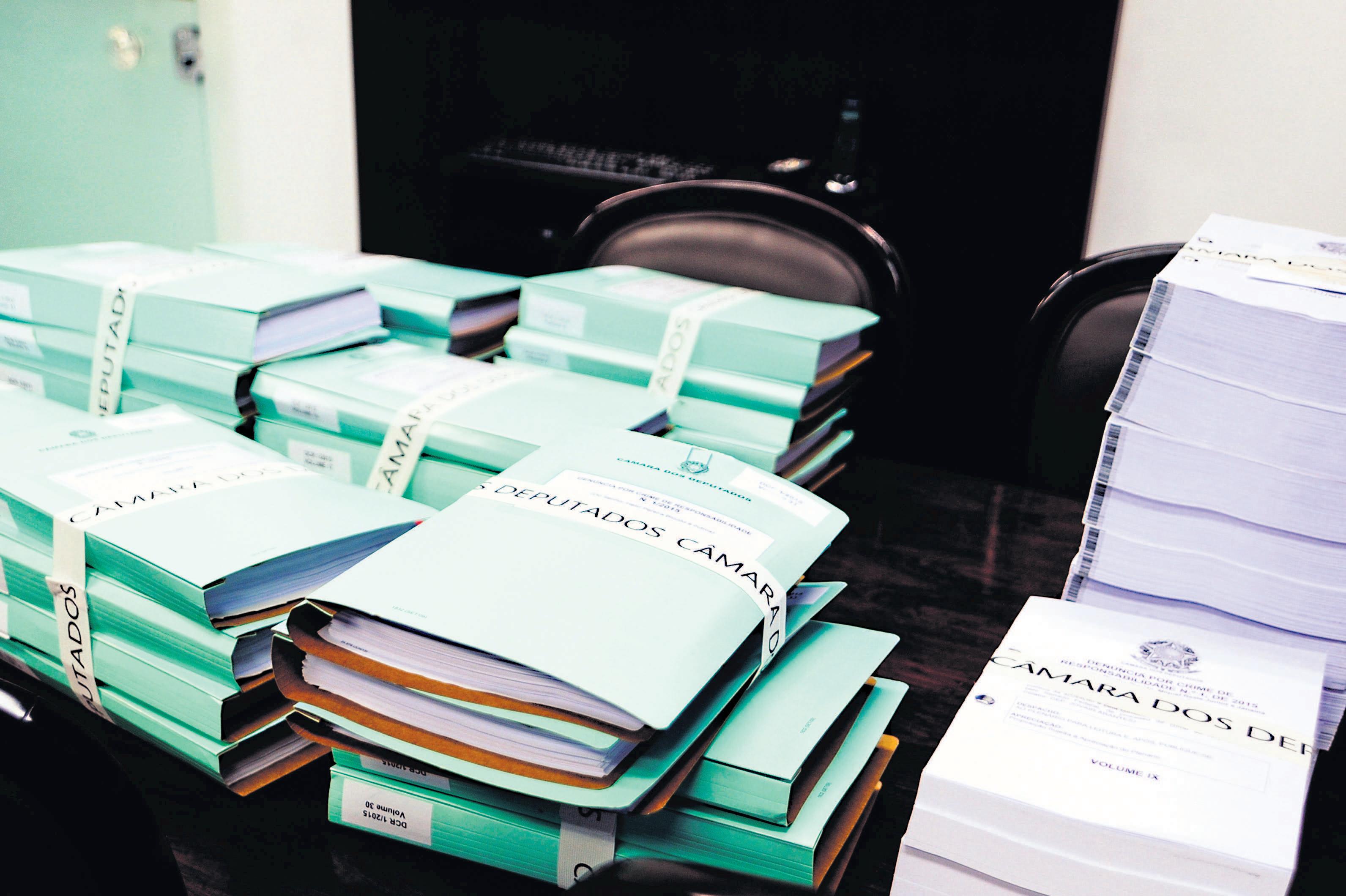 ADilma Rousseff foram entregues pelo presidente da Câmara dos Deputados, Eduardo Cunha (PMDB), ao líder do Senado e colega de partido, Renan Calheiros. Após a vitória por 367 votos fa-