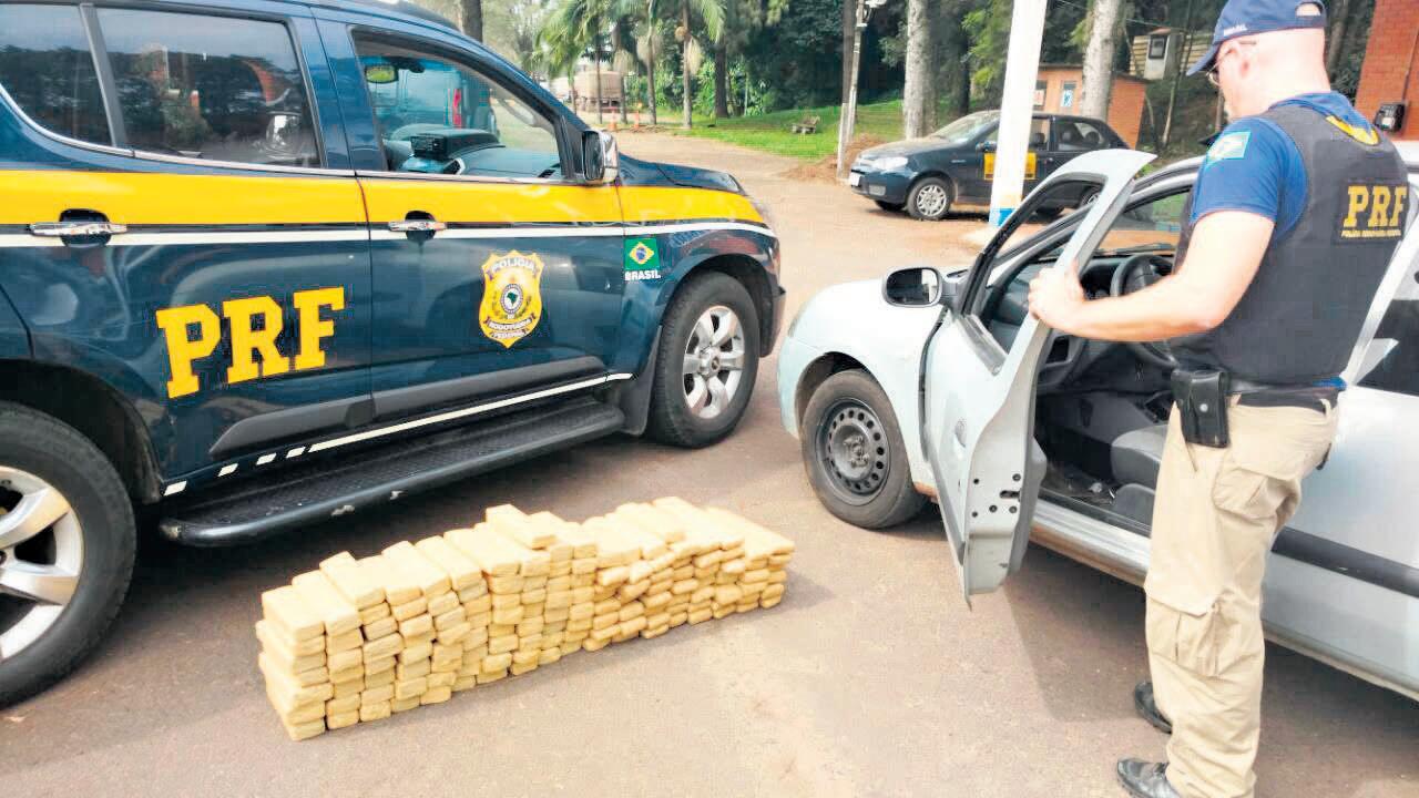 Um automóvel Clio, com placas de Porto Alegre, foi abordado por volta das 10h de ontem. Os agentes da Polícia Rodoviária Federal (PRF) encontraram embaixo de uma lona no porta-malas dezenas de tijolos de maconha. O condutor admitiu que transportava a mercadoria de Mundo Novo,MatoGrossodoSul,paraaRegiãoMetropolitanadoRS.Elefoiencaminhado para Santa Cruz do Sul
