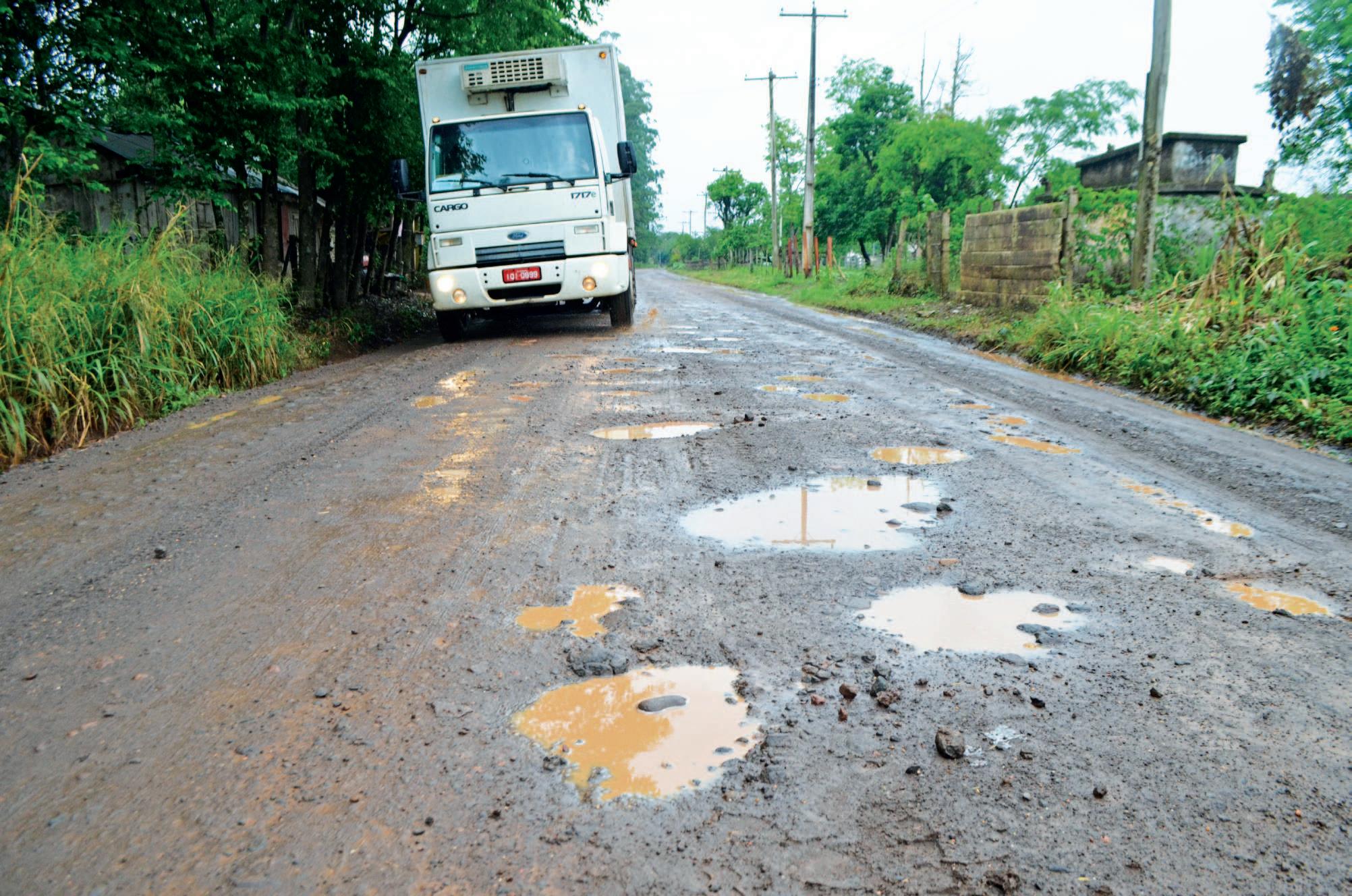 DESCASO: poucos metros depois do trecho onde o governador José Ivo Sartori inaugurou três quilômetros de asfalto, moradores da comunidade de Bom Fim, em Cruzeiro do Sul, estão descrentes de que a promessa de terminar a pavimentação até o distrito de Mariante, em Venâncio Aires, ocorra nos próximos anos.