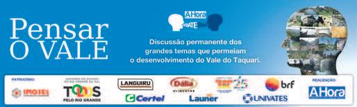 fazer as coisas acontecerem. Em um momento marcado pelo individualismo, a lição mais nobre da comunidade regional é a solidariedade. Esse perfil local de não esperar pela morosidade do poder público é uma das principais forças do Vale. A economia diversificada, mais resistente aos efeitos da instabilidade do país, ocorreu mais por iniciativa privada do que por planejamento público. Foi a visão do empreendedor que tornou a região um local próspero e aberto para aqueles que vêm de fora em busca de evolução profissional e pessoal. Com cada vez mais aperto na participação dos governos para atender as necessidades locais, se amplia a necessidade de ações pontuais das comunidades. As iniciativas ganham importância. Diante disso, o A Hora elabora mais uma edição do anuário Tudo. A publicação será lançada durante a Expovale e apresenta alternativas das empresas para o momento de instabilidade na economia.