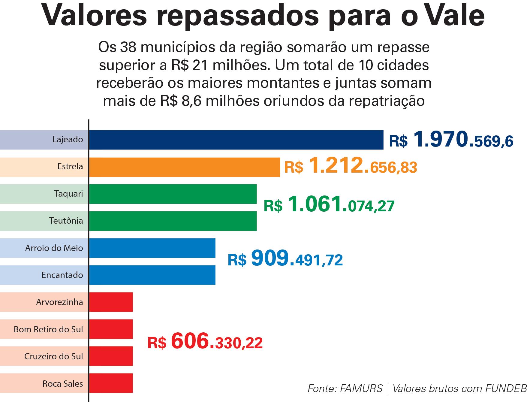 ano. Montante pode entrar no caixa nas cidades em duas parcelas até o fim do mês. Valor bruto destinado aos 38 Executivos Vale do Taquari ultrapassa R$ 21 milhões.