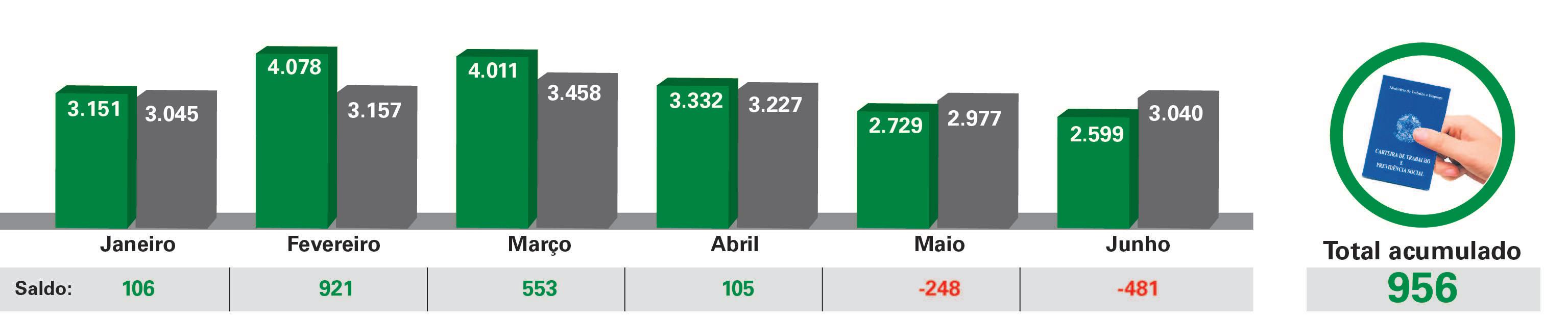 Saldo nos seis meses deste ano é positivo