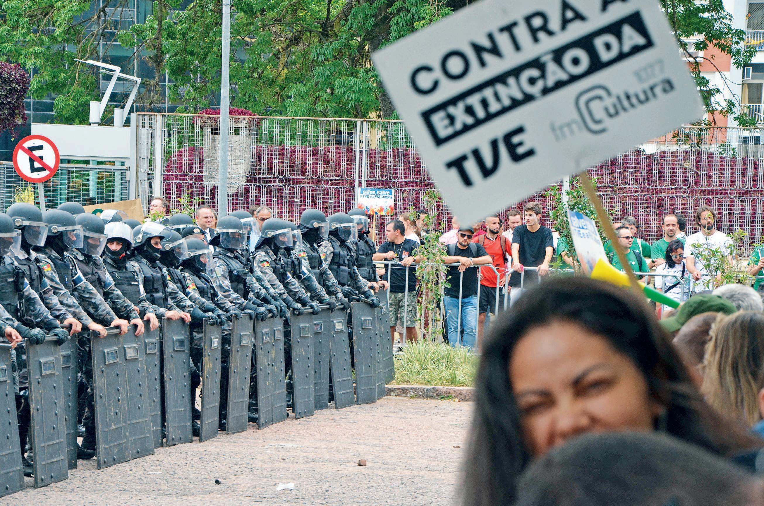 ASSEMBLEIA SITIADA: no lado de fora do parlamento gaúcho, aparato