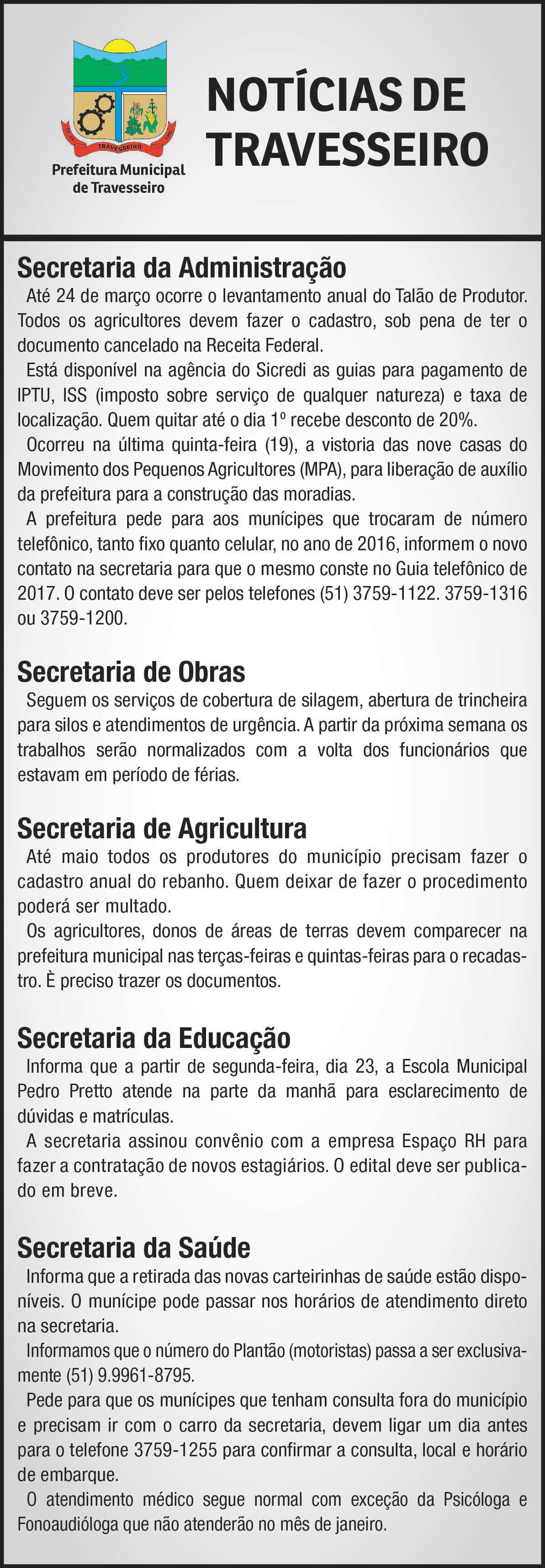 alguns momentos. Mas o esforço para acertar é respeitável. A sociedade está atenta. As entidades de classes igualmente estão empenhadas e apostam em mudançasnaprefeituradeLajeado.Se os experientes caciques não se adequarem, podem colocar em risco o governo de Caumo. O segredo está em unir a experiência com a energia dos mais novos. Criar sinergia e não disputa de vaidades.