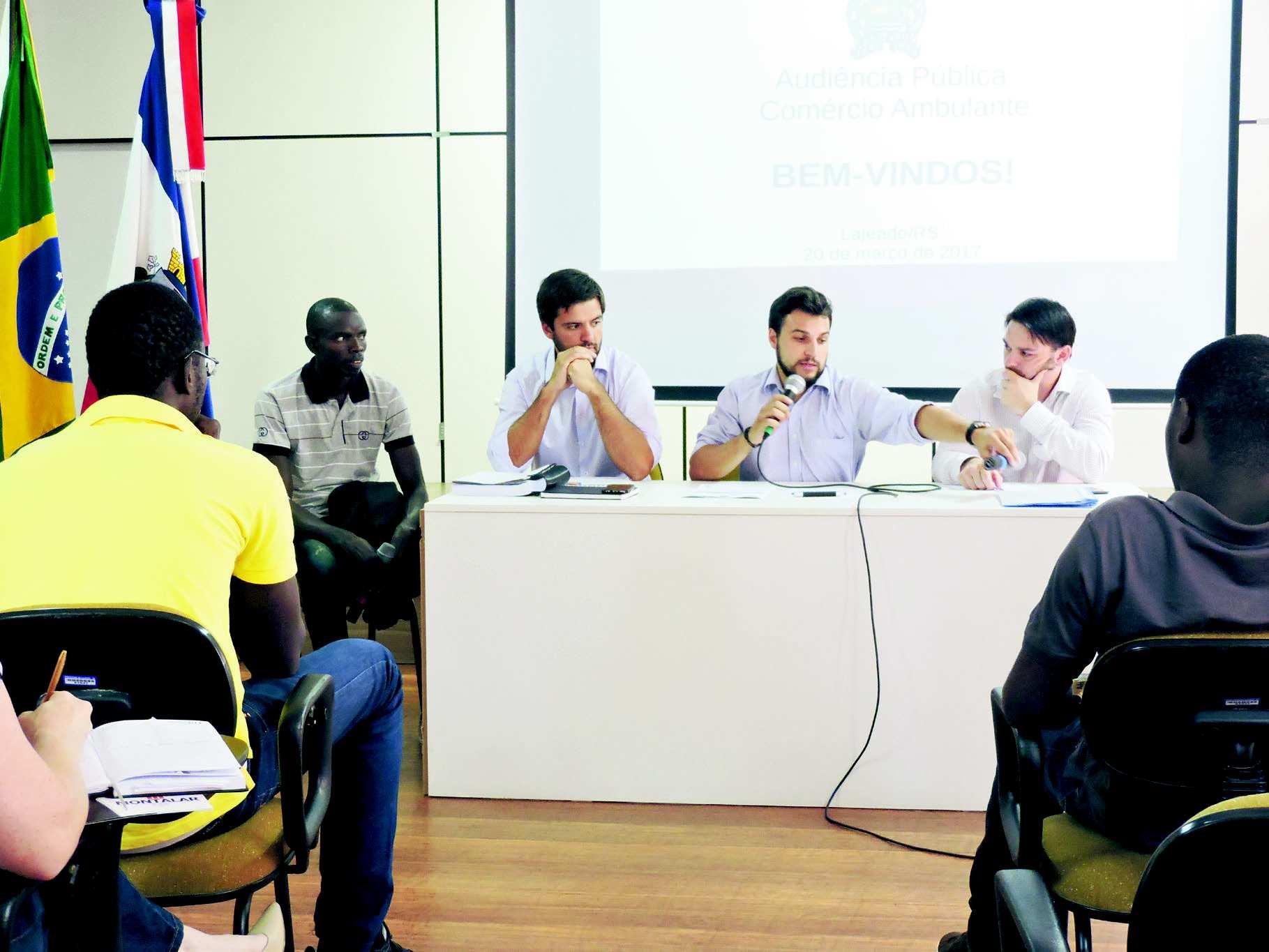 O encontro foi coordenado pelos secretários de Desenvolvimento Econômico, Turismo e Agricultura (Sedetag), Douglas Sandri; da Fazenda, Guilherme Cé; e do Planejamento e Urbanismo (Seplan), Rafael Zanatta. Com a ajuda do tradutor Mor Mdioye, eles orientaram os ambulantes sobre as formas de se regularizarem.