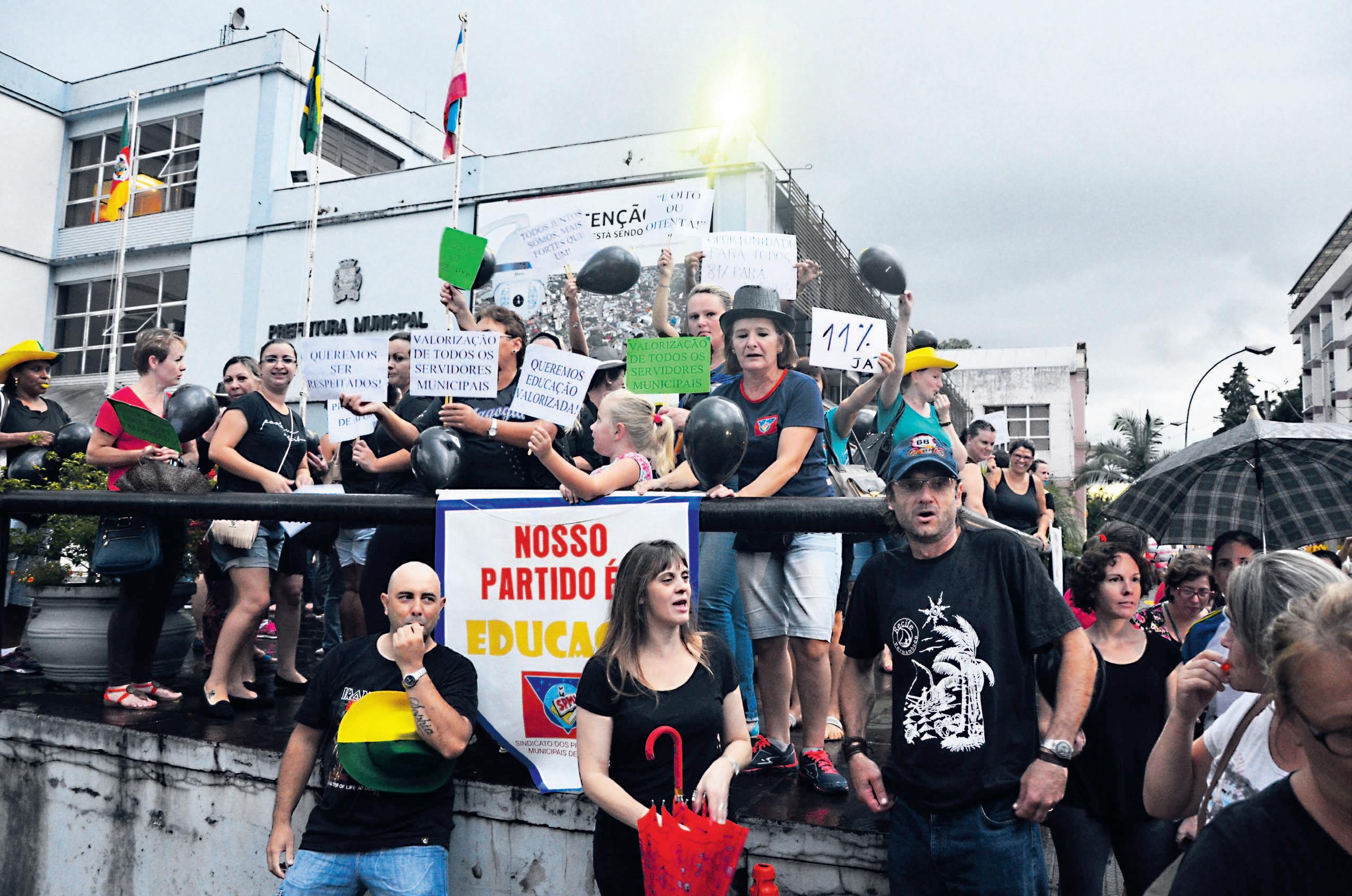 Oaumento de 8% oferecido pelo governo de Lajeado desagrada trabalhadores. Ontem, cerca de 200 funcionários públicos enfrentaram a chuva e foram às ruas criticar a proposta. Hoje, a classe promete paralisar os serviços em escolas e