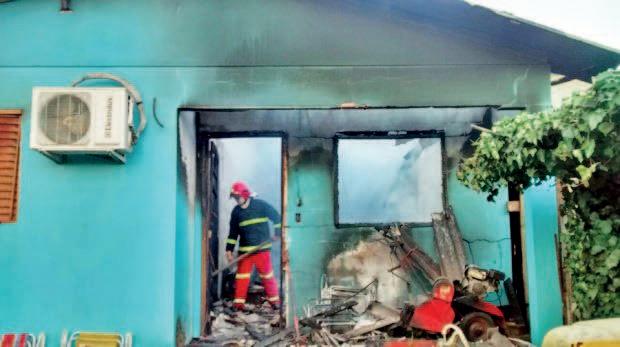 Uma guarnição da Brigada Militar foi chamada e os policiais conseguiram tirar um automóvel Meriva da garagem da residência. O carro já estava danificado pelas chamas. Voluntários do Corpo de Bombeiros controlaram as chamas e salvaram parte da residência.