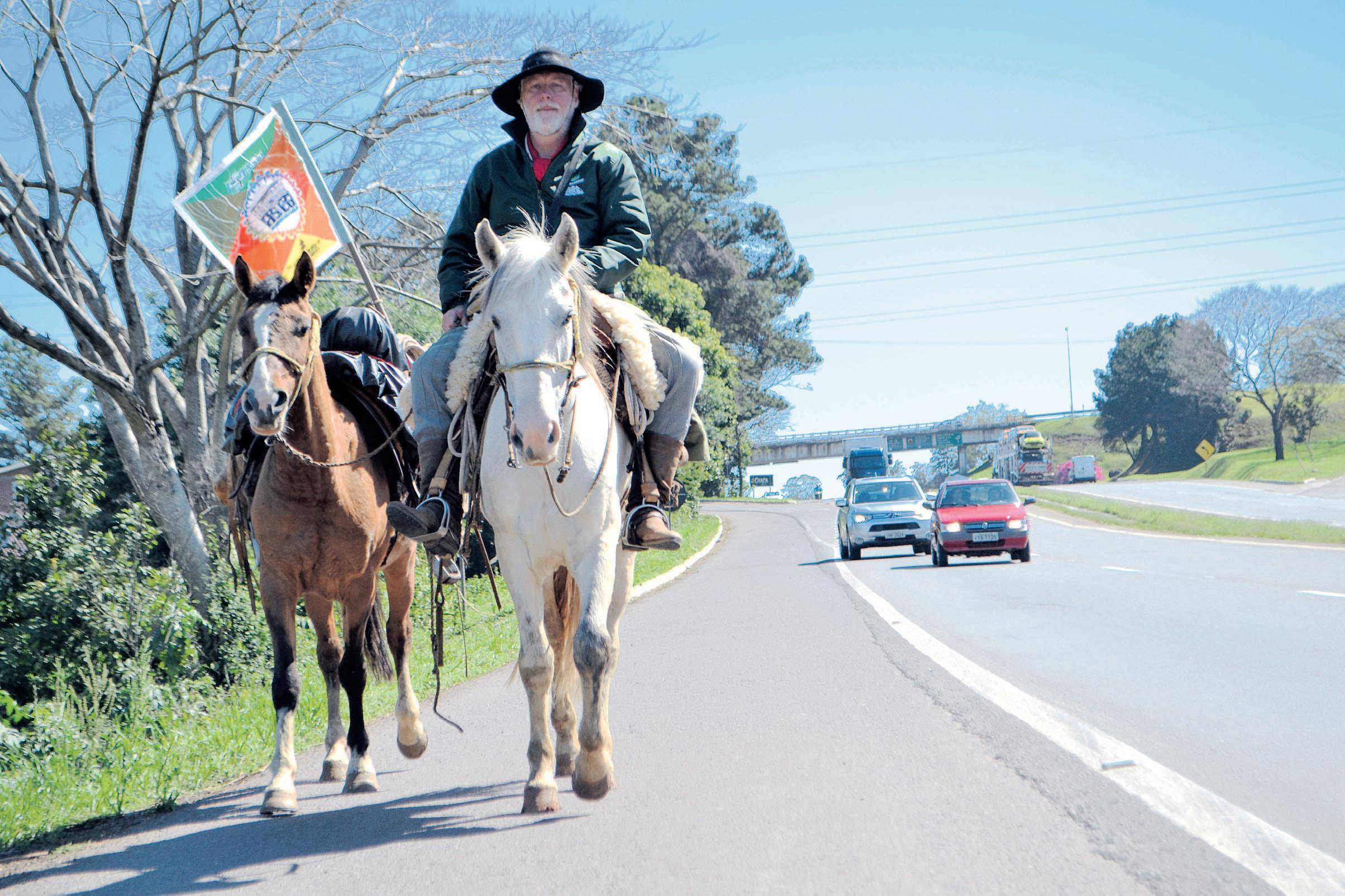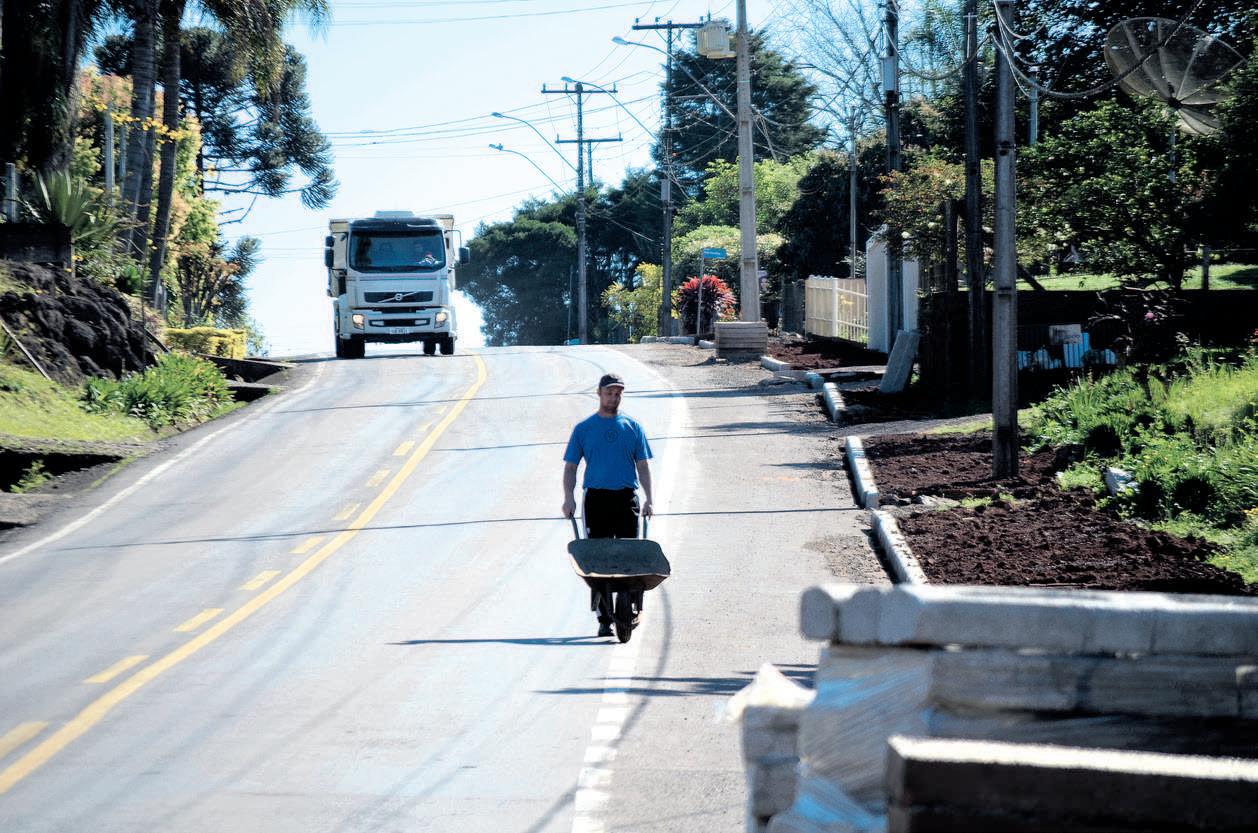 Moradores de Conventos, em Lajeado, caminham pela pista da ERS-421 devido à construção de calçadas. Obras estariam ocorrendo em ritmo lento por causa da falta de repasses