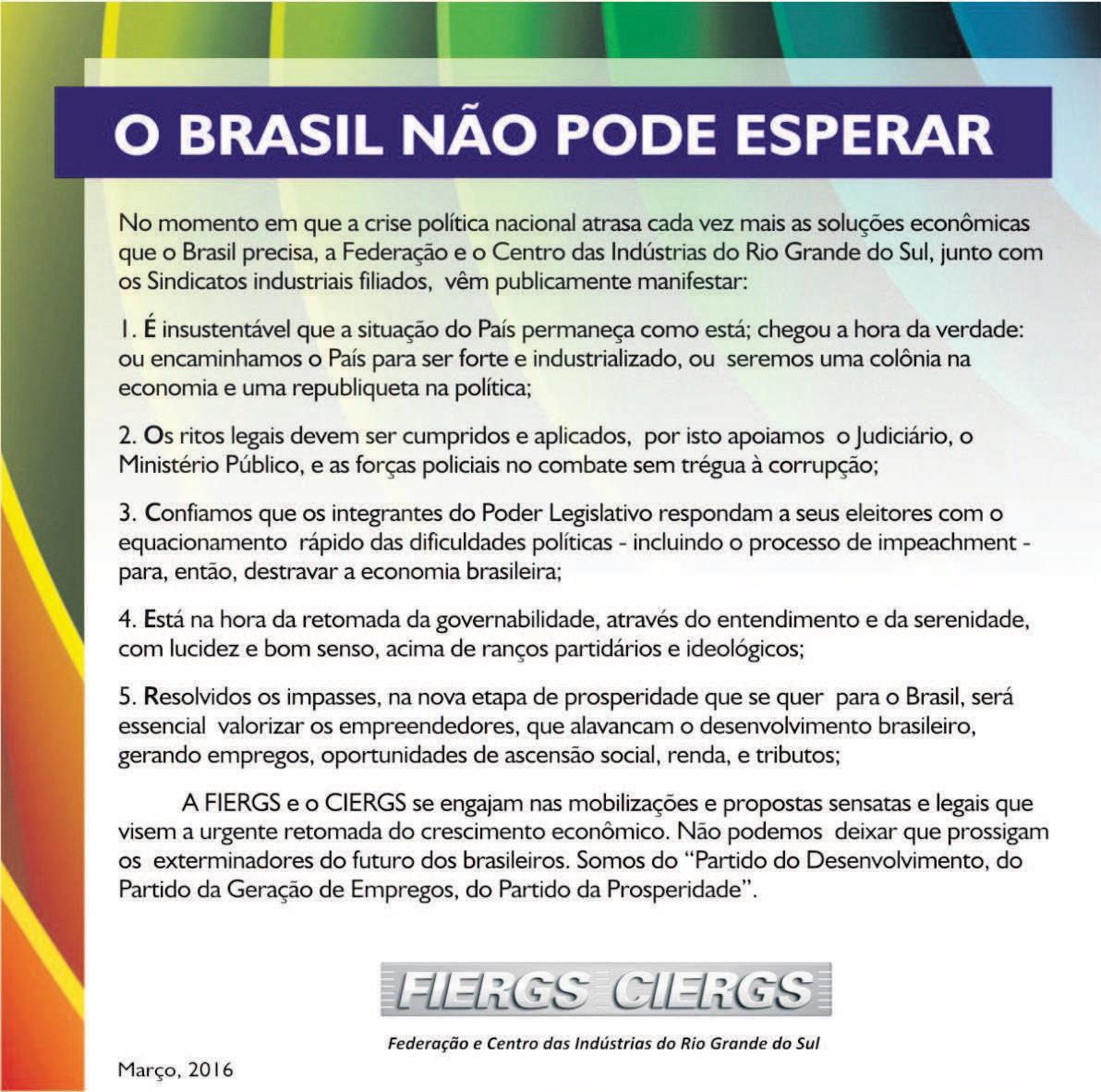 Tendo em vista as notícias divulgadas pela imprensa de que 47 políticos gaúchos, entre os quais consta meu nome como beneficiado de doações da Odebrecht, esclareço que recebi recursos do Partido Socialista Brasileiro (PSB) Nacional, cujo doador originário foi a Cetrel Lumina Tecnologia e Engenharia Ambiental, empresa ligada ao grupo Odebrecht, e que esta doação está devidamente declarada em nossa prestação de contas de campanha, que pode ser acessada pelo link http:// inter01.tse.jus.br/spceweb.consulta.receitasdespesas2014/ abrirTelaReceitasCandidato.action